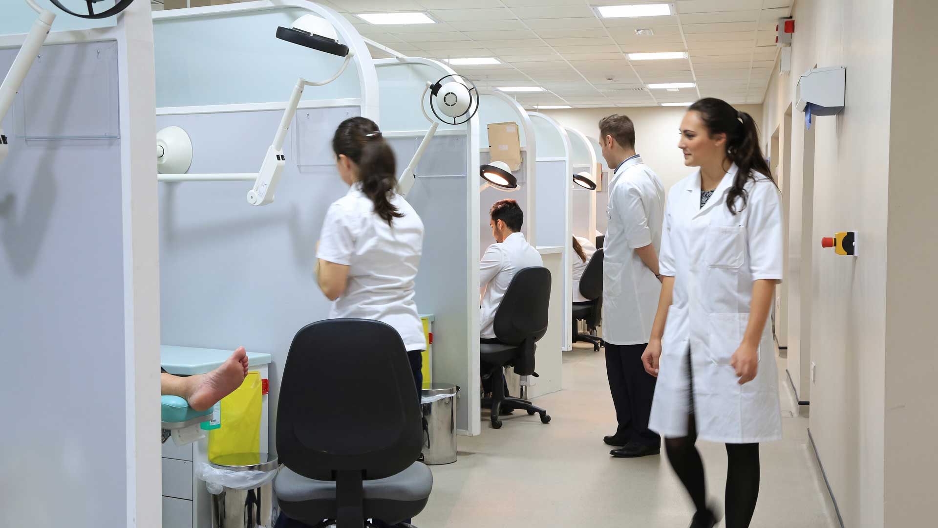 - On the full-time course, you will undertake a clinical practice module, enabling you to develop your clinical practice in the University’s podiatry clinic and out in practice on a 17-week placement.